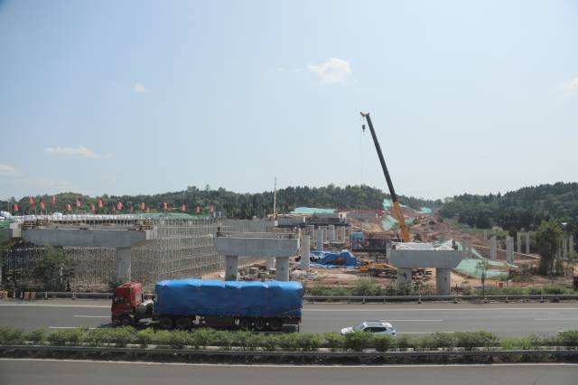 “下阶段,我们将在确保各项作业安全前提下,加快推进项目建设。预计跨成安渝高速钢混叠合梁架设7月中旬进行,高狮枢纽互通的首片梁8月中旬进行,主线现浇梁9月中旬完成,奋力向全年建设目标任务发起冲刺。”项目负责人表示。
